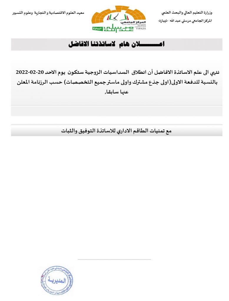 الرئيسية/Slide/إعلان هام لأساتذة معهد العلوم الاقتصادية والتجارية و علوم التسيير Slideأحداثأخبارأساتذة إعلان هام لأساتذة معهد العلوم الاقتصادية والتجارية و علوم التسيير 20 فبراير 2022 629 أقل من دقيقة 20 فبراير 2022 629 أقل من دقيقة اظهر المزيد شاركها فيسبوك تويتر لينكدإن مشاركة عبر البريد طباعة