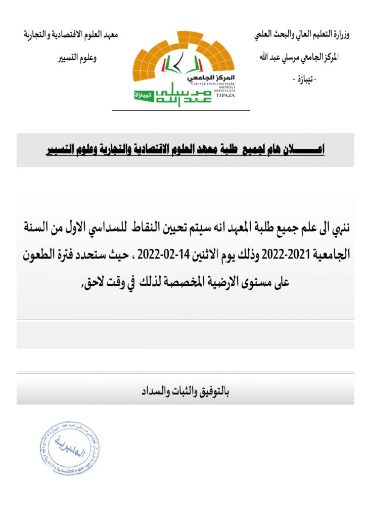 الرئيسية/Slide/إعلان هام لجميع طلبة معهد العلوم الاقتصادية و التجارية و علوم التسيير Slideأحداثأخبارطلبة إعلان هام لجميع طلبة معهد العلوم الاقتصادية و التجارية و علوم التسيير 13 فبراير 2022 669 أقل من دقيقة 13 فبراير 2022 669 أقل من دقيقة اظهر المزيد شاركها فيسبوك تويتر لينكدإن مشاركة عبر البريد طباعة