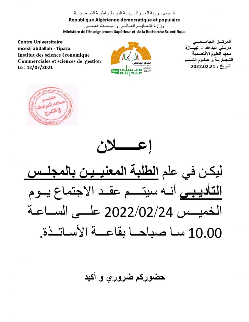 الرئيسية/Slide/اعلان هام للطلبة المعنيين بالمجلس التأديبي Slideأحداثطلبة اعلان هام للطلبة المعنيين بالمجلس التأديبي 22 فبراير 2022 1٬187 أقل من دقيقة 22 فبراير 2022 1٬187 أقل من دقيقة اظهر المزيد شاركها فيسبوك تويتر لينكدإن مشاركة عبر البريد طباعة
