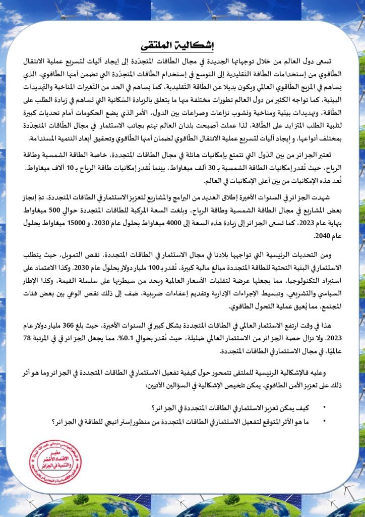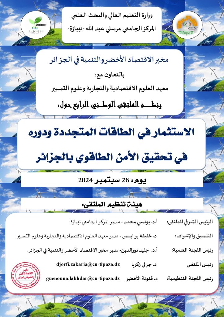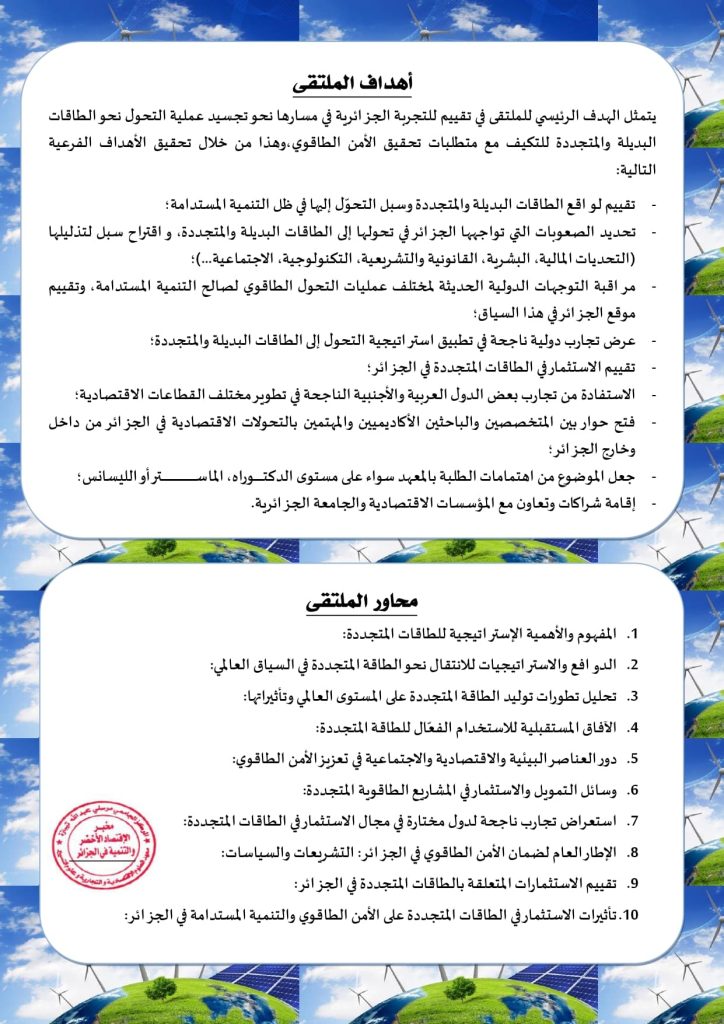 الملتقى الوطني الرابع حول ” الاستثمار في الطاقات المتجددة و دوره في تحقيق الأمن الطاقوي بالجزائر ”