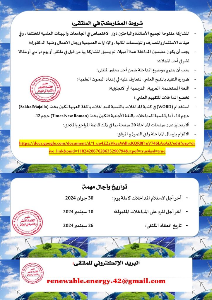 البريد الالكتروني للملتقى : renewable.energy.42@gmail.com