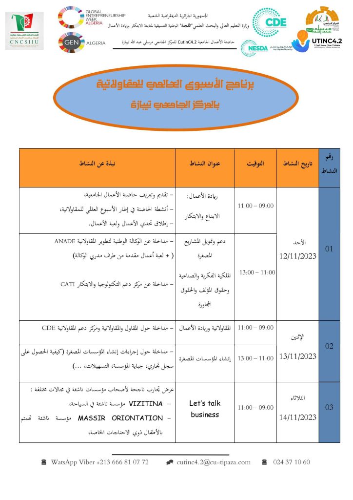 الرئيسية/Slide/برنامج الأسبوع العالمي للمقاولاتية بالمركز الجامعي تيبازة Slideأحداثإعلانات برنامج الأسبوع العالمي للمقاولاتية بالمركز الجامعي تيبازة 11 نوفمبر 2023 809 أقل من دقيقة 11 نوفمبر 2023 809 أقل من دقيقة اظهر المزيد شاركها فيسبوك تويتر لينكدإن مشاركة عبر البريد طباعة