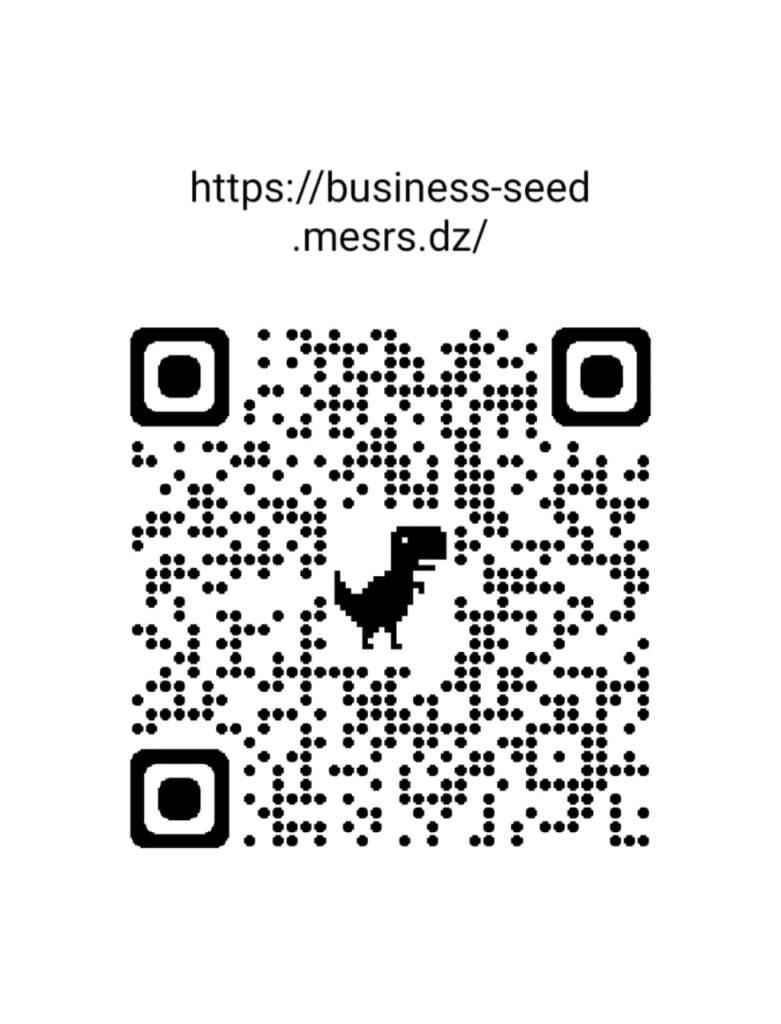 رابط حاضنة الأعمال الرقمية، الأولى وطنياًّ و مغاربياًّ https://business-seed.mesrs.dz/ أو عبر مسح الرابط :