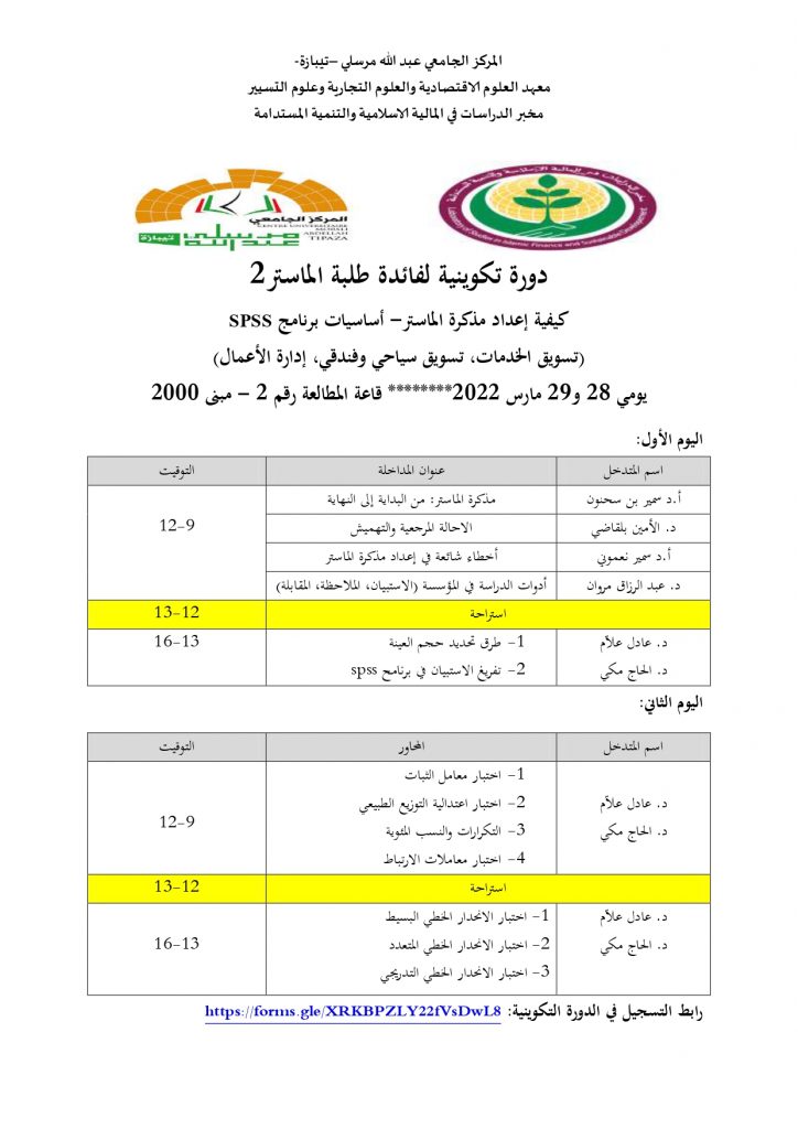 - كيفية إعداد مذكرة الماستر- أساسيات برنامج SPSS- رابط التسجيل في الدورة التكوينية