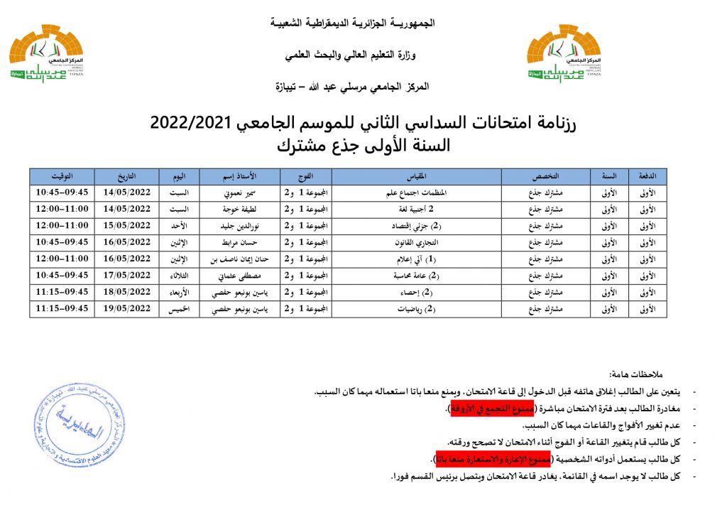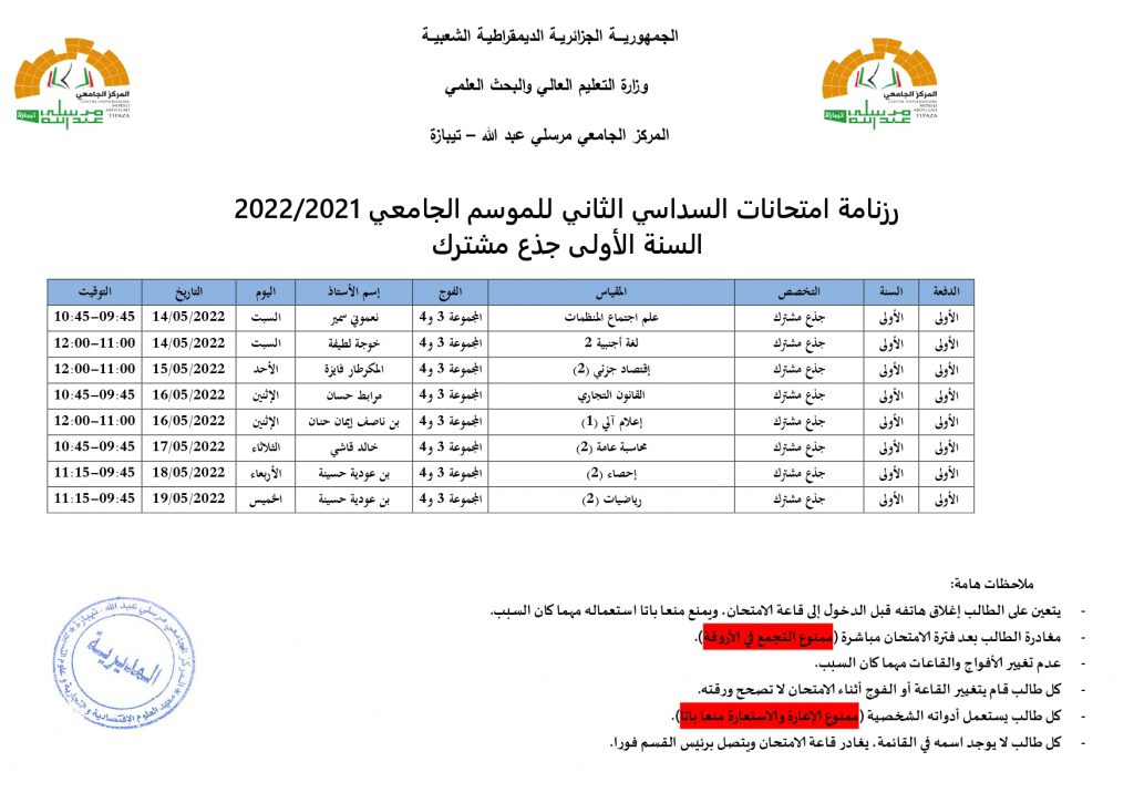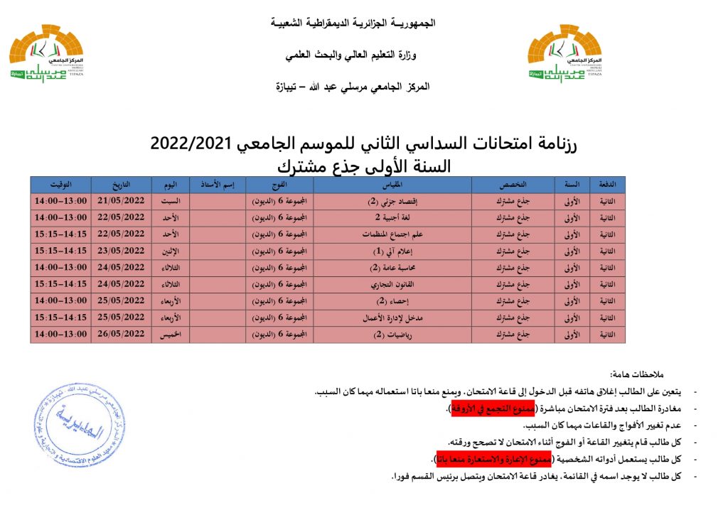 الرئيسية/Slide/رزنامة الامتحانات السداسي الثاني للموسم الجامعي 2022/2021 السنة الأولى جذع مشترك Slideأحداثطلبة رزنامة الامتحانات السداسي الثاني للموسم الجامعي 2022/2021 السنة الأولى جذع مشترك 27 أبريل 2022 693 أقل من دقيقة 27 أبريل 2022 693 أقل من دقيقة اظهر المزيد شاركها فيسبوك تويتر لينكدإن مشاركة عبر البريد طباعة